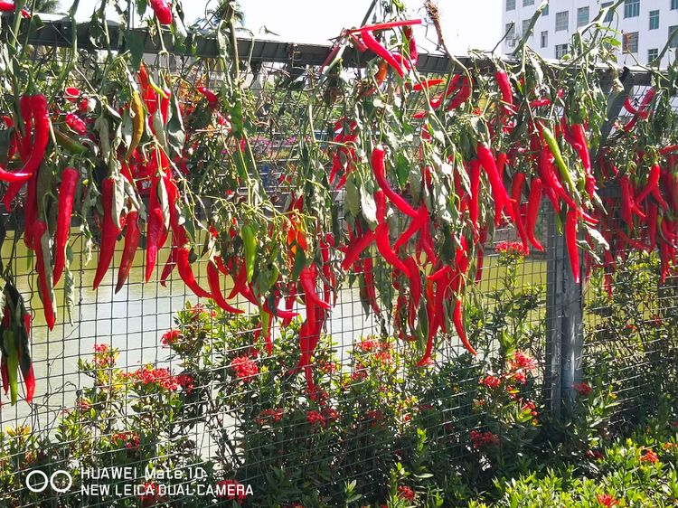 昨天,我们小区的邻居们到附近农民的菜园中去,有开两轮摩托的,有开三轮摩托的,我们从小区后边的鸿森医院门口路过,只过了一个小桥,便到了成片成片的枝头掛满火红辣椒的菜地边。这些辣椒,菜农都不收了,放弃了收摘,让来自全国各地的外地居民们来随意采摘。