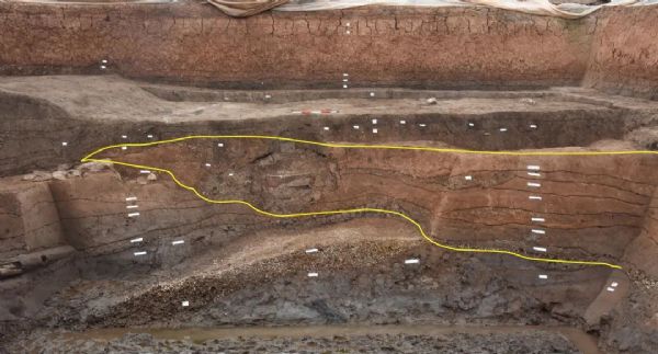 寺洼遗址南段东侧“围壕”解剖沟西壁剖面。新华社照片